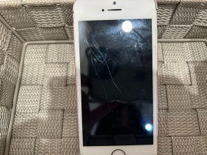 今回お持ち込み頂いたiPhoneSEのお客様はテレビのリモコンをスマホの画面にぶつけてこのようになった。
