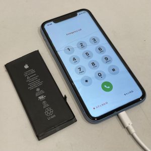 今回はiPhoneXRのバッテリー交換依頼にて八尾市光町よりご来店いただいた修理のご紹介。