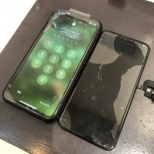 つい5分前に落とされたそうで、画面のガラスのみ割れたそうで、ご来店されました
