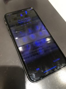 今回は画面が黒く滲んでしまったiPhoneXの修理です。