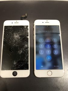 アイフォン6Sをお持ちのお客様でして、画面のガラスがバキバキになってしまったと
