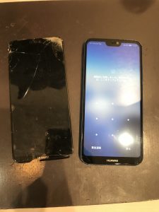 ファーウェイの画面のガラスが割れてしまい、修理して欲しいと当店に来て頂きました。