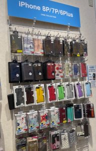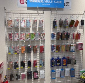 ワゴンの中にも手帳ケースや背面ケース様々な種類のケースを