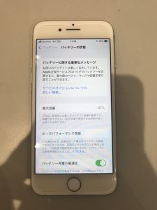 バッテリーが著しく劣化している状態でした。バッテリーの最大容量は87%でした。
