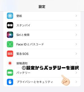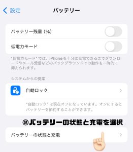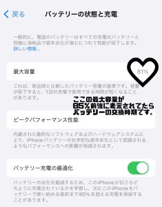 こちらが今使われているiPhoneのバッテリー最大容量の確認方法になります。