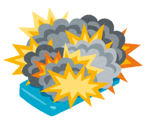 バッテリーは何かが刺さったり折れ曲がったりすると白煙を上げて発火する性質を持っています。