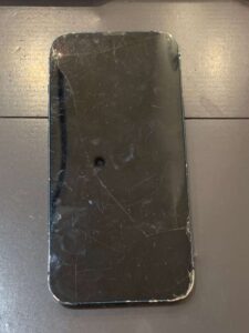 ご相談いただいたiPhone14は、落下の衝撃により画面全体にヒビが入った状態でした。