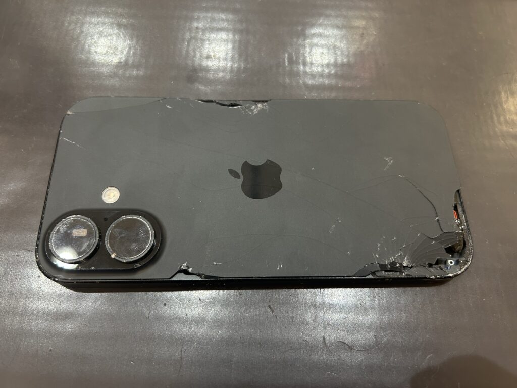 今回は、iPhone16の背面ガラス割れとフレームの歪みでお持ち込みいただきました。