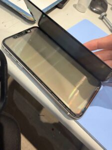 iPhone Xの画面は、内部フレームと接着・固定されているため、強い落下衝撃が入るとガラス割れだけでなく、画面の固定部分が弱って「浮き」「剥がれ」が起きることがあります。割れが細かいほどガラスの強度が落ち、端からめくれるように剥がれていくケースもあります。