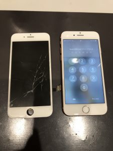 アイフォン8を使用されている方でしてアイフォンを落としてしまい画面が割れてしまったとご来店されました( ´ ▽ ` )