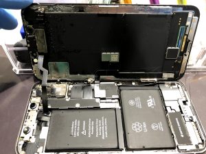 ・iPhoneの画面がバキバキに割れて液晶漏れも起こしている