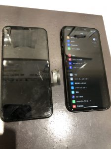 アイフォンXRをお持ちのお客様でして、落としてしまった拍子に画面が割れてしまい
