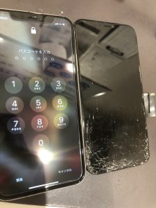 落とした衝撃により液晶の右半分以上が真っ黒に💦