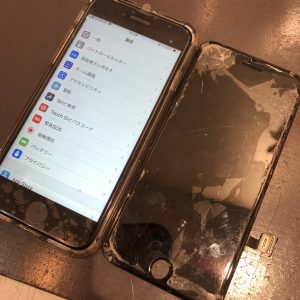 画面が割れ、液晶漏れもしていて画面が見えないとのことでご来店されました。