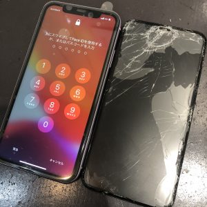 機種はiPhone11で下の写真を見てもらってもわかるとおり、かなりひび割れがひどい状態です。
