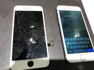 ここまでiPhone7がバキバキに割れている状態ですと、タッチセンサーや液晶がいつ壊れてもおかしくはありません。