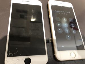 お子様が使っているiPhone7の画面が故障しており、修理して欲しいと当店に来てくださいました。