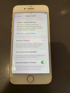 本日ご来店いただいたお客様は、携帯で動画を見ていたりゲームをしていると熱をもつようになったり、充電がすぐに減るといったことが増えてきたためバッテリーの無料診断をご希望していただき当店で診断を行なったところ、バッテリーの劣化が進んでいました。