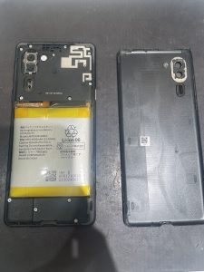 シンプルスマホは背面から開ける機種なので、このように背面を開けさせていただきバッテリーを取り替えました!