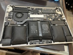 今回はパンパンに膨れ上がった「MacBook Pro」のバッテリー交換をしてほしいとのことでお客様にお越しいただきました。