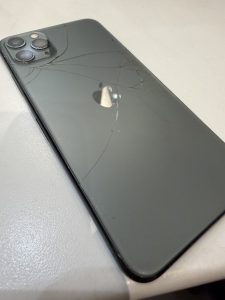 お持ちいただいたiPhone11 proMaxの背面がバキバキに割れてしまっていました。