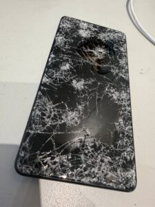 - 症状:ガラス全面割れ/表示の黒シミ・線・にじみあり/タッチ完全不良(ゴーストタッチ発生)