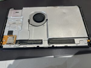 内部クリーニングでは、分解工程で露出した基板・ケーブル・排気口まわり・ファンなどを丁寧に清掃し、内部のホコリ詰まりを改善します。