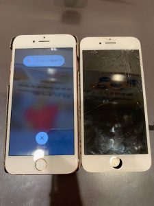 アイフォンが手から滑ってしまい角からおとして画面が破損してしまった・・・