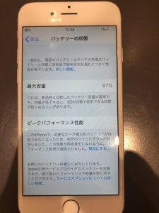 写真のように最大容量が67%しかなく劣化しているとの説明書きもでてきてしまっています(;´Д`)