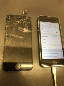 アイフォン5Sをお使いで地面にアイフォンを落としてしまわれたらしく