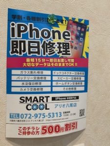 即日修理可能なiPhone修理屋スマートクールアリオ八尾店です!
