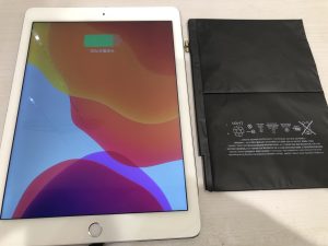 アイパッドエアー2をお持ちのお客様でして、充電の減りが早くなってきたと当店に持ち込んでいただきました。