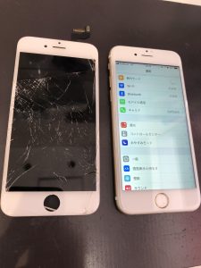 iPhone6Sをお使いのお客様でして、落としてしまい画面がバリバリに割れてしまい