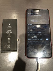 アイフォン8を約3年ほどお持ちのお客様で、充電の減りがかなり早いので修理してほしいと当店に来て頂きました。