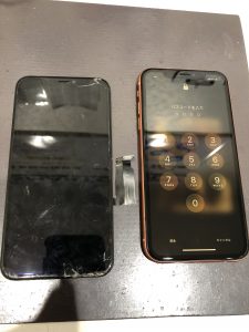 アイフォンXRの画面のガラスがアイフォンを落とした拍子に割れてしまったと言うことで