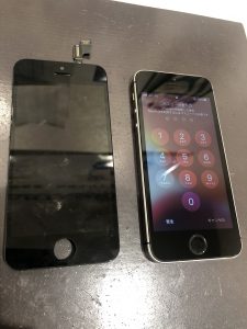 アイフォンSEの第一世代をお持ちでして、落としてしまい液晶に線が入り、全く操作できない状態になってしまったと