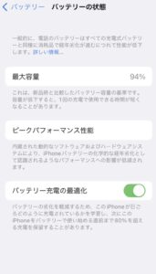 バッテリー最大容量が85%未満の場合は交換を推奨します。