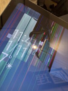 ご相談は「画面が割れて、表示に線が入った」「黒いにじみが広がってきた」という内容でした。タブレットは画面が大きいぶん、落下だけでなくカバンの中で圧がかかっただけでも割れてしまうことがあります。さらに、割れた直後は使えていても、時間が経ってから急に悪化するケースも多いです。